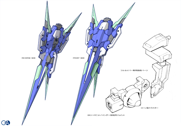 The main usage of Harmony, apart from the obvious "defence", is the 3 pairs of 2 green Sword Bits, mounted around Harmony's perimeter. These Sword Bits can detach from Harmony, expanding from the slots, or can simply fan out to create a larger surface area, and can combine with Discord to create a buster sword, doubling it's length and reach. In this form, Discord's handle extends to compensate for the additional weight and length. The Sword Bits can also act as extra swords for Setsuna to use, but are merely a backup option. Each set of bits can combine to achieve the length of a regular sword or be merged in one of multiple combinations for varying lengths, limited to 3 bits at one time. In addition, each bit is magnetic, providing easy assembling of the buster sword or secure connection to the shield.